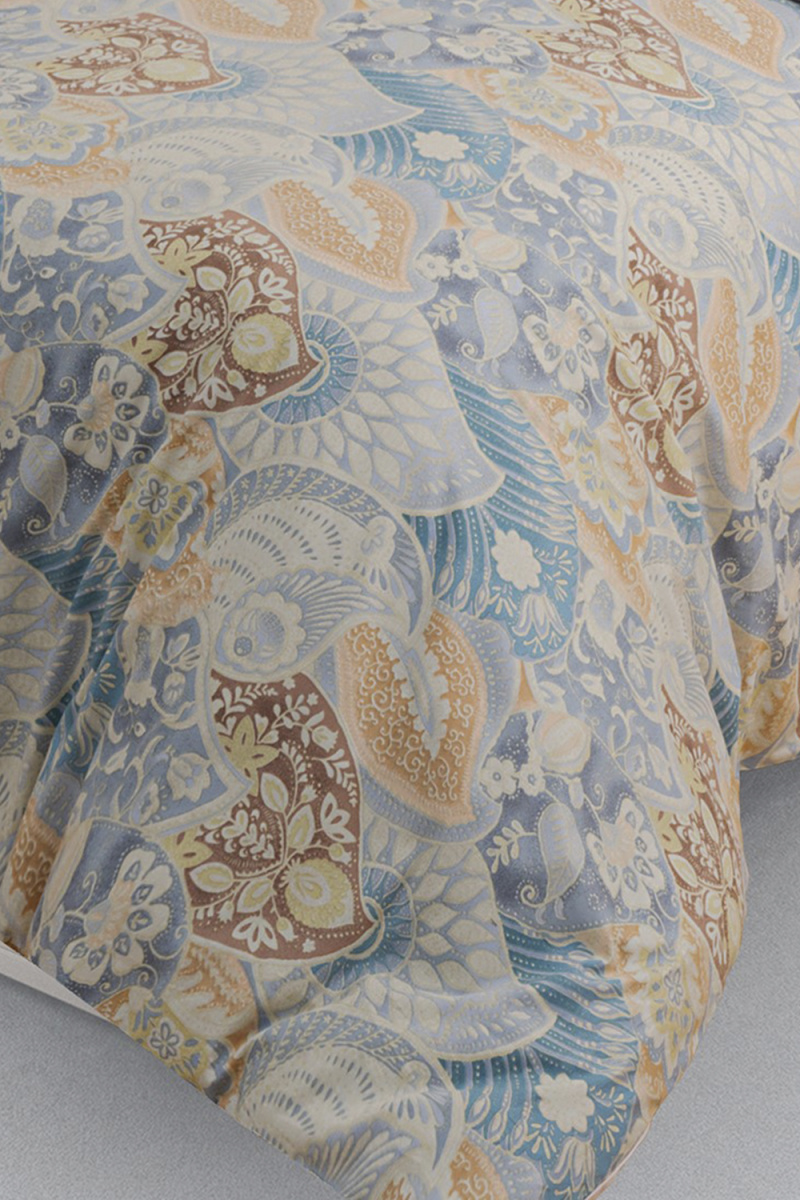 Постельное белье выполнено из сатина высокой плотности (пряжа 40х40) с пигментным окрашиванием. Ткань шелковистая, очень приятная на ощупь. Пододеяльник и наволочки сшиты из основной ткани, простынь и обратная сторона пододеяльника выполнены из ткани-компаньона.